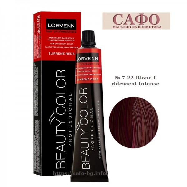 Lorvenn Permanent Hair Color Beauty Color Supreme Reds № 7.22 Blond Iridescent Intense, 70 ml