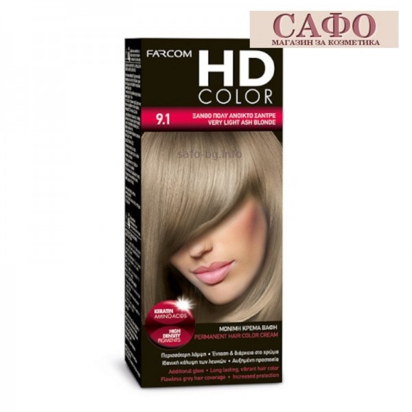 Перманентна боя за коса Фарком HD Color № 9.1  Very Light Ash Blonde, 120 мл.