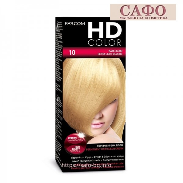 Перманентна боя за коса Фарком HD Color 10 Extra Light Blonde, 120 мл.