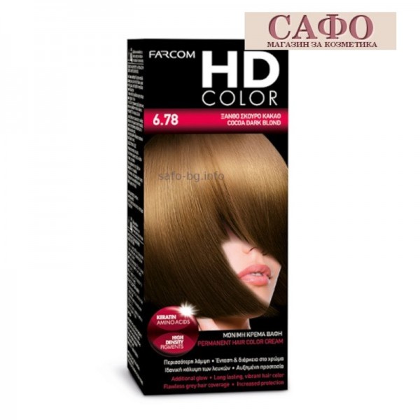 Боя за коса №  6.78 Тъмно Русо Какао Farcom HD Color Cocoa Dark Blonde Покажи в цял размер